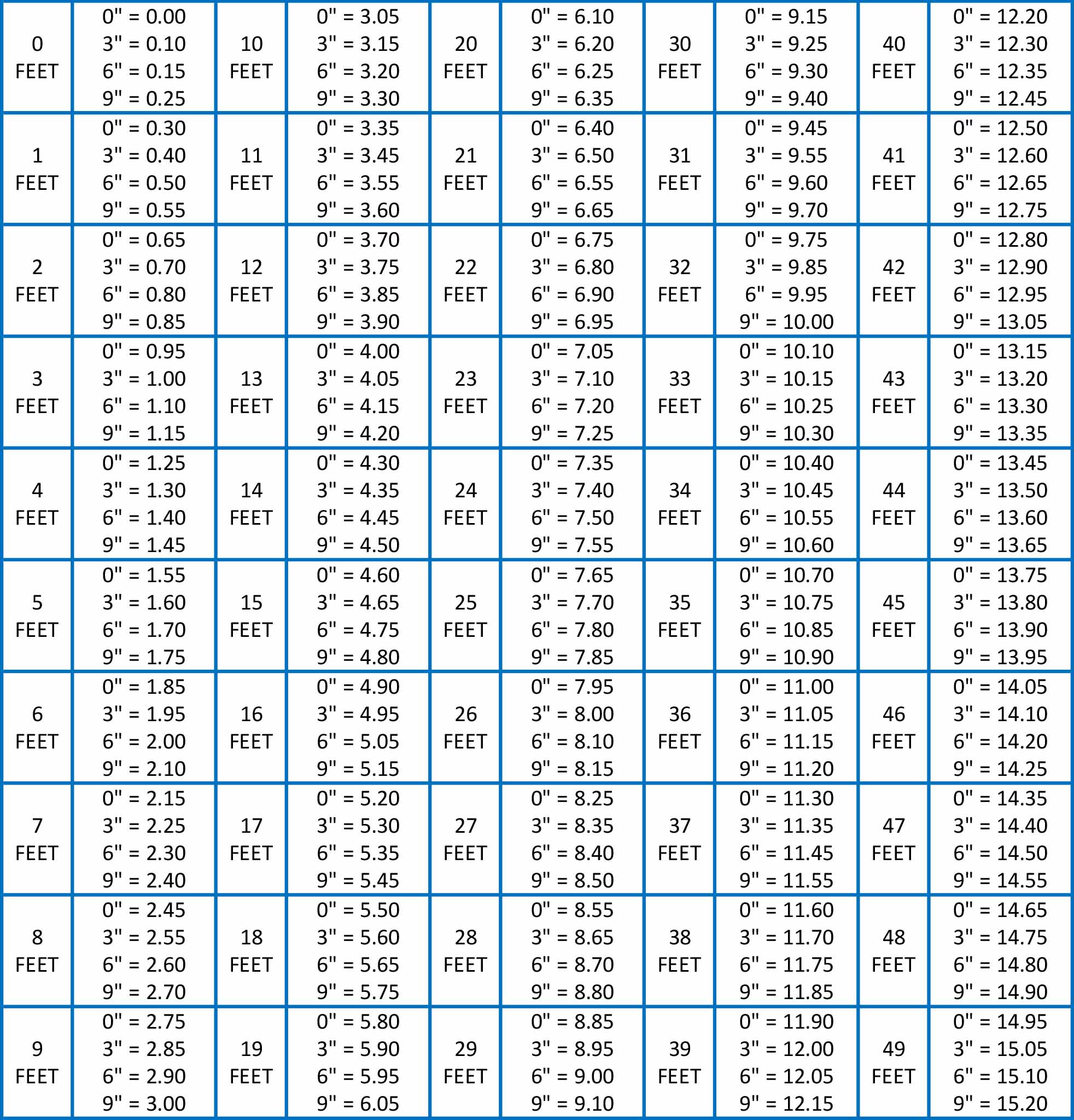 METRIC CONVERSION TABLE